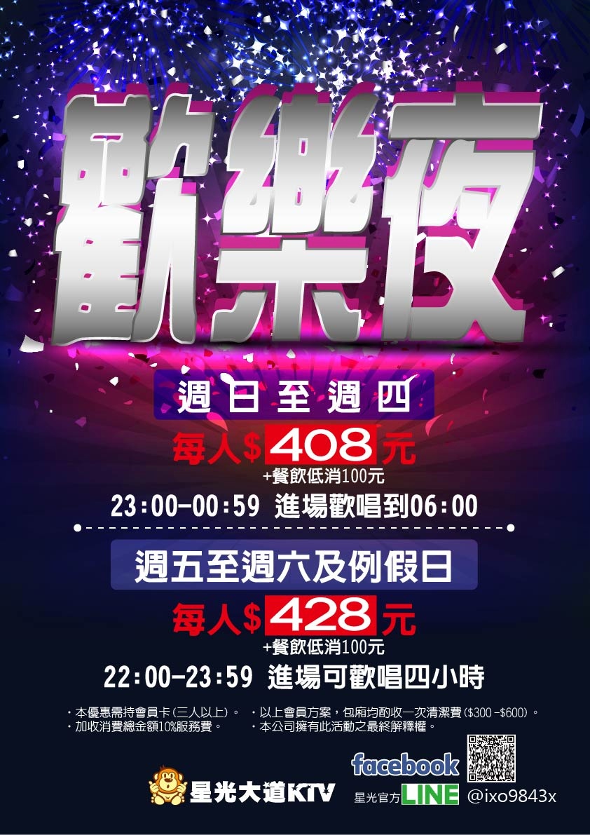 [歡樂夜/平日] 23:00後進場 可唱到早上06:00